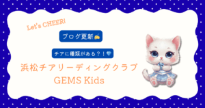 こんにちは! 浜松市で活動するインクルーシブ・チアリーディングクラブ「GEMS Kids(ジェムズキッズ)」です! お子さんの習い事を考えたとき、「チア」を思い浮かべる方もいらっしゃるかもしれません。 でも、テレビで見か […]